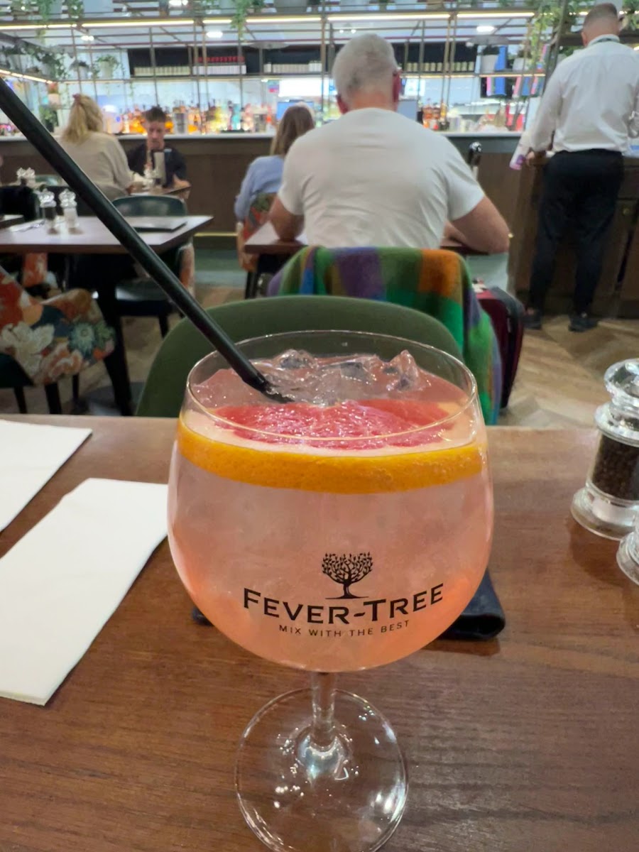 Never tried the food but the COCKTAILS ARE WELL WORTH IT! Got the grapefruit honey spritz and it was perfect for an afternoon sip before a flight. The bar was full but there were tables open. This is already a sign that the place is more known for its drinks than its bites. Highly recommended if you’re looking for a decent cocktail in the Gatwick Airport, North Terminal!